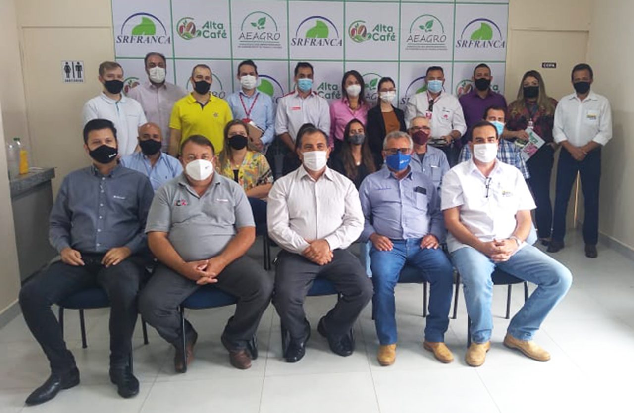 Na manhã desta quinta-feira, dia 18 de novembro, a diretoria da AEAGRO – Associação dos Empreendedores do Agronegócio de Franca e Região reuniu-se com representantes das principais instituições financeiras da Região da Alta Mogiana. O objetivo foi apresentar o projeto da 2ª ALTA CAFÉ – Feira de Negócios e Tecnologia da Alta Mogiana – O Evento da Cafeicultura, feira que será realizada de 22 a 25 de março de 2022, no Clube de Campo de Franca, município de Restinga (SP), bem como sugerir às instituições financeiras a criação de linhas diferenciadas de negócios para o evento.