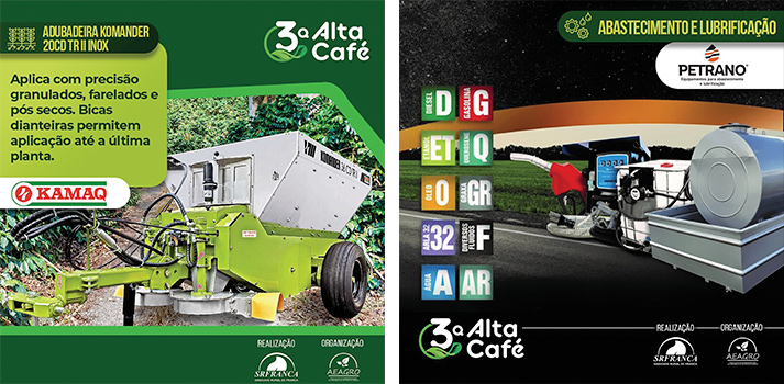 Além dos visitantes da 3ª ALTA CAFÉ poderem conhecer de perto as principais tecnologias para a sua lavoura de café, desde máquinas (Tratores, Colheitadeiras, Adubadeiras, Roçadeiras, Trituradoras, Podadoras, Arruadoras, Carretas, Guinchos, Pás-Carregadeiras, Recolhedoras, Abanadoras, Sopradoras, Classificadores, Descascadores, Despolpadores, Lavadores e Secadores); irrigação (sistemas, motores, bombas); agricultura de precisão (startups, agricultura digital, drones, mapeamentos, agrimensura, geotecnologia, aplicativos, segurança eletrônica); insumos (agroquímicos, agrobiológicos, consultorias); financiamentos e mercado futuro (instituições financeiras, tradings, barter); e energia solar, a Comissão Organizadora informa que irá apresentar um sistema de “troca por café” totalmente diferenciado do que é feito atualmente no mercado.