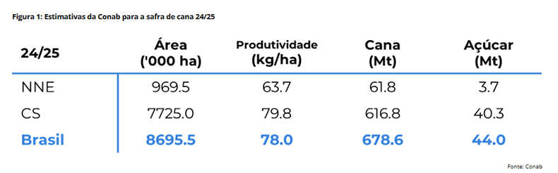 Segundo Lívea Coda, analista de Açúcar e Etanol da Hedgepoint Global Markets, “em relação ao primeiro ponto, a Conab não trouxe novas informações significativas. A previsão é de uma produção menor de cana, com uma redução de 4,8% na produção, apesar de um aumento de 4,3% na área colhida”.
