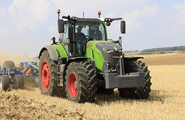 ⦁ Fendt 728 Vario –  Equipado com o potente motor AGCO Power Core 75 de 283 cv de potência nominal e que com Dynamic Performance, disponível nas versões com 265 e 283 cv, o trator atinge até 20 cv extras para demandas auxiliares, chegando a 303 cv de potência máxima. A transmissão VarioDrive, com tração integral e transferência de torque inteligente entre os eixos, permite maior capacidade de tração. A cabine VisioPlus com suspensão pneumática aliada à plataforma FendtONE proporciona alto conforto com uma operação simples e precisa dos implementos agrícolas, enquanto o Fendt Connect permite ao produtor monitorar o desempenho em tempo real, garantindo maior rendimento e menor custo operacional.