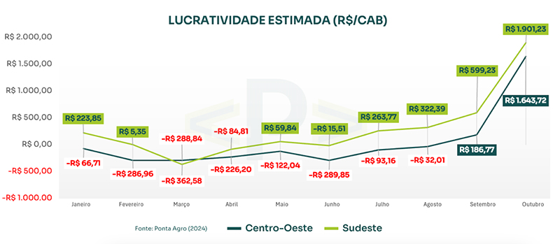 Lucro por animal confinado atinge R$ 1.901,23 em outubro, com perspectivas otimistas para o encerramento de 2024.