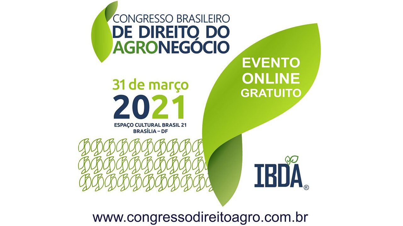 Os desafios jurídicos regulatórios do agronegócio estarão em debate na próxima quarta-feira, dia 31 de março, a partir das 9h00. Com a participação de autoridades jurídicas, governamentais e do agronegócio na abertura e nos quatro painéis, o Congresso Brasileiro de Direito do Agronegócio (CBDA) terá transmissão online e gratuita, por meio do Canal do Youtube do Instituto Brasileiro de Direito do Agronegócio (IBDA). Para se inscrever, acesse o site: www.congressodireitoagro.com.br.