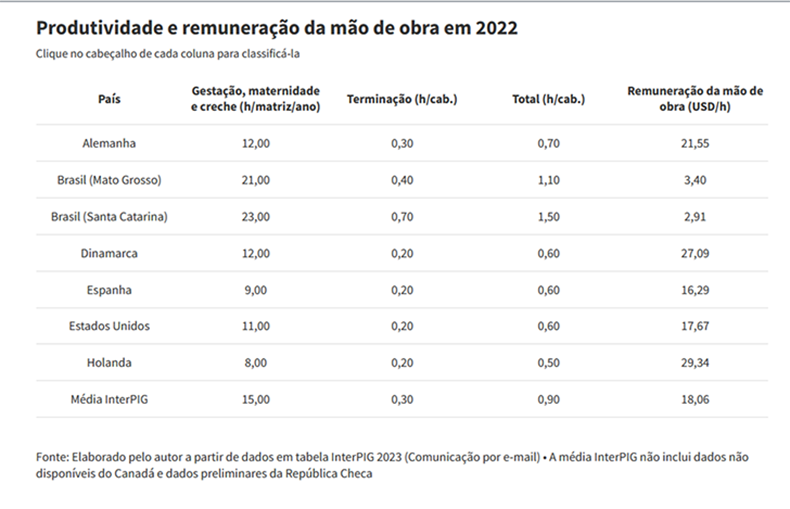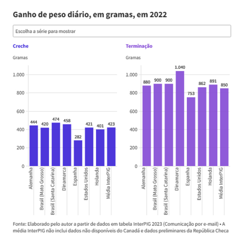 A reunião InterPIG ocorre anualmente, envolvendo as principais instituições de pesquisa que estudam a competitividade da suinocultura nos principais países produtores. A Embrapa Suínos e Aves participa desde 2008 com estimativas para Santa Catarina, onde conta com a parceria de uma cooperativa e preços coletados pelo Centro de Socioeconomia e Planejamento Agrícola (Epagri/Cepa), e para Mato Grosso, com a parceria do Instituto Mato-grossense de Economia Agropecuária (IMEA) e da Associação dos Criadores de Suínos de Mato Grosso (Acrismat). Para ambos os estados utiliza estatísticas de desempenho das matrizes disponíveis no concurso Melhores da Suinocultura (Agriness).