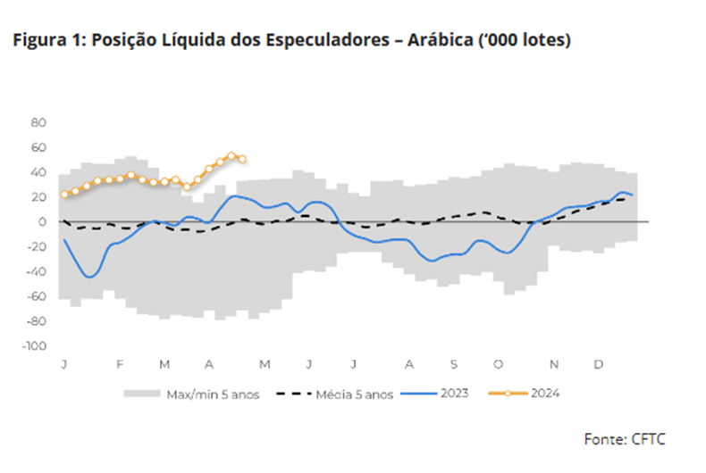 Apesar de algumas perspectivas positivas para o aumento das chuvas no Vietnã, as previsões ainda não resultaram em uma recuperação clara, já que a região está enfrentando temperaturas acima da média. Além disso, os roasters registraram uma leve desaceleração no primeiro trimestre, com foco em padrões de consumo doméstico. No entanto, os resultados não são consistentes em todas as categorias, o que limita a pressão de baixa.
