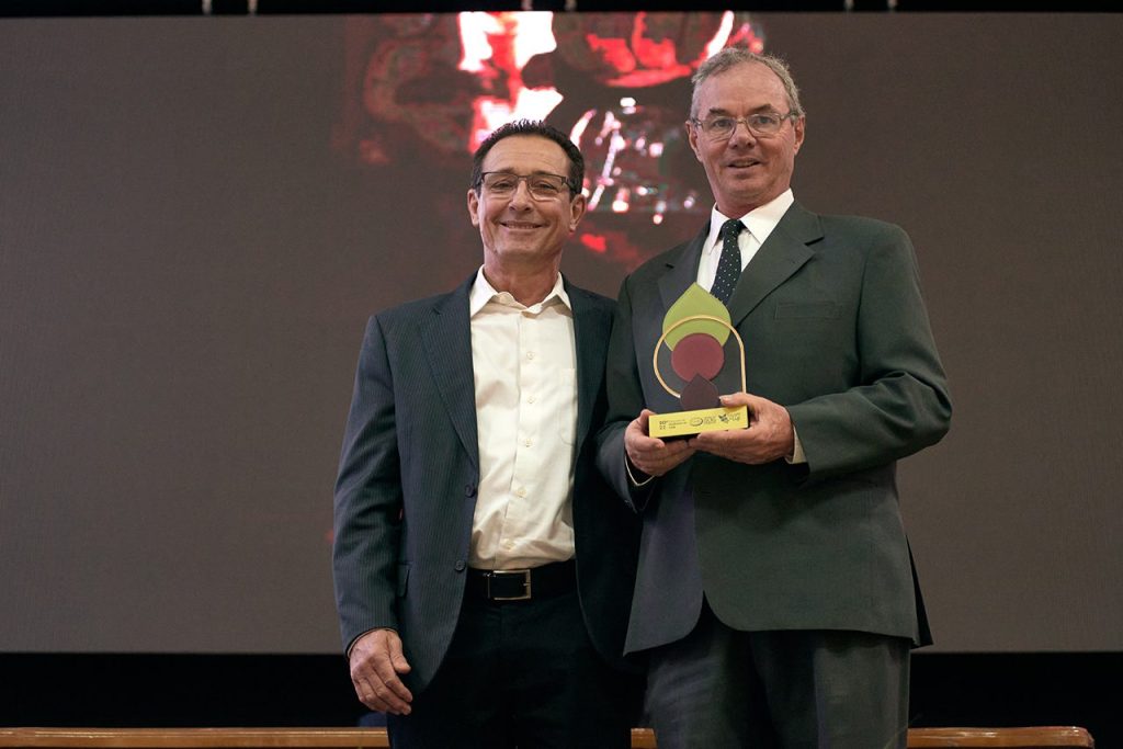 Ely Martin Vieira Brentini (presidente do Sindicato Rural de Pedregulho e idealizador das primeiras edições do concurso) e Milton Cerqueira Pucci (presidente do Conselho Associativo da AMSC e um dos fundadores da Associação). (Créditos: Igor do Vale/Divulgação)