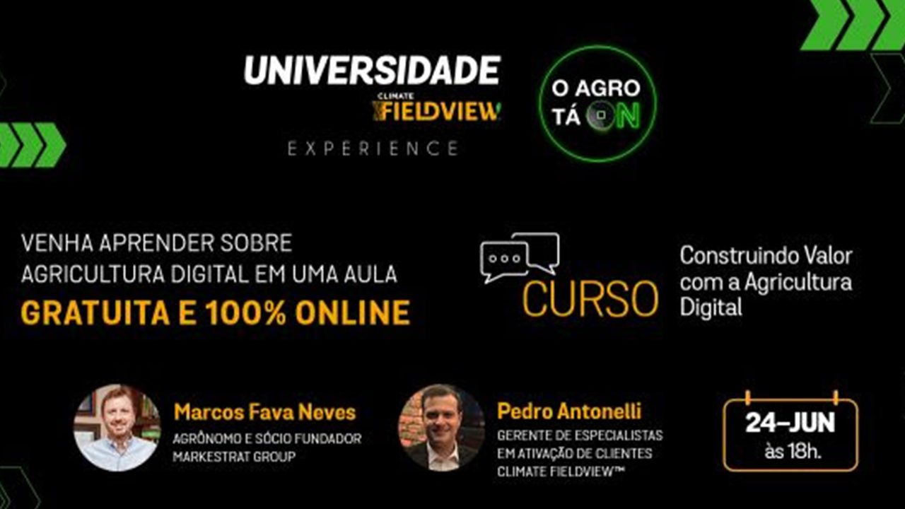 A construção de valor a partir da digitalização do agronegócio será o tema de um curso gratuito organizado pela Climate FieldView, a plataforma de agricultura digital da Bayer. A aula será ministrada no dia 24 de junho, às 18h, e é aberta a profissionais agrícolas interessados no assunto.