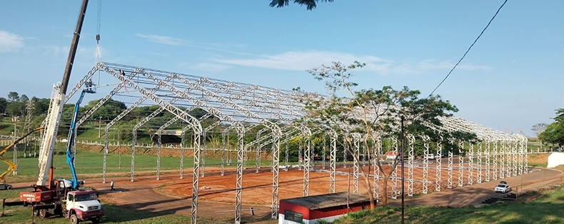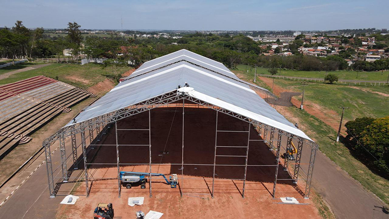 Montagem da estrutura está sendo feita no Recinto de Exposições Jacob Tosello, em Presidente Prudente (SP).