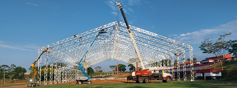 A tenda principal de 4.400m² terá um vão livre de 40 metros e será coberta por um tecido de alta tecnologia, desenvolvido pela TopFlex, empresa com 25 anos de atuação no mercado.
