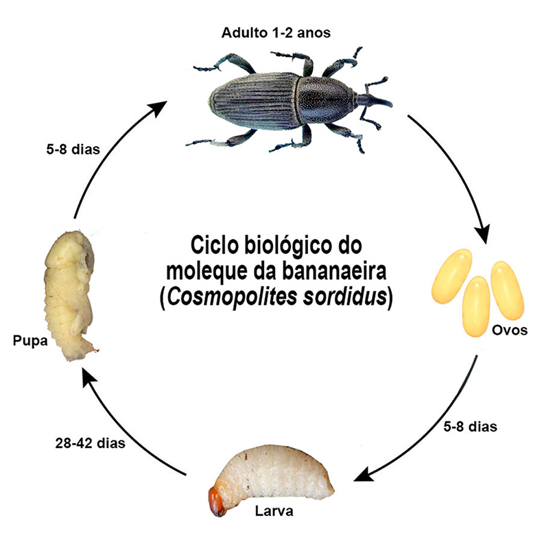 Ciclo biológico do Moleque-da-Bananeira (Cosmopolites sordidus)