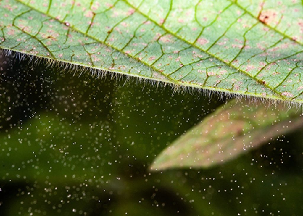 Esporos da ferrugem em folha de soja (Créditos: ANeto)