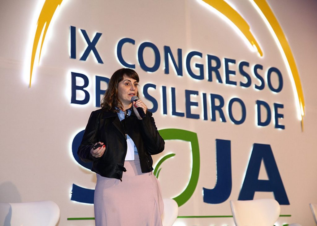 Pesquisadora Francismar Guimarães no IX Congresso Brasileiro de Soja (Créditos: Silvio Vera)