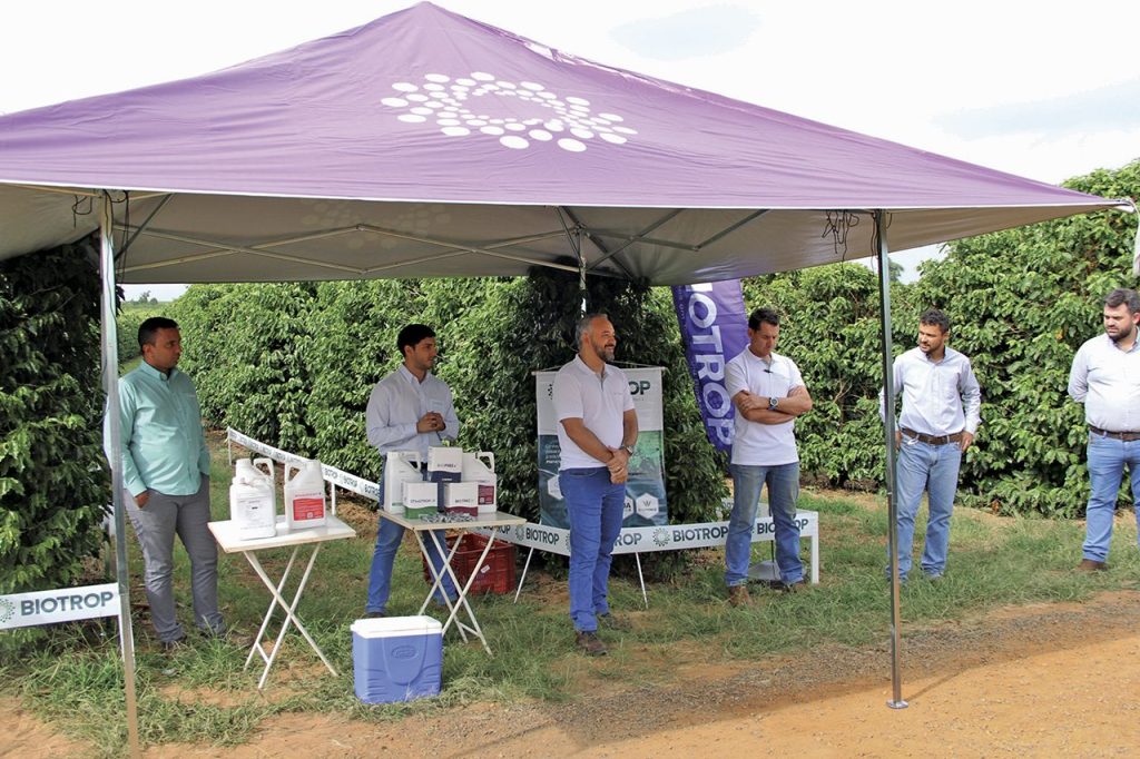 E é exatamente neste terceiro pilar que a Biotrop tem como propósito transformar o agro, inovando com biológicos para a produção de alimentos saudáveis, mas sempre com foco no sucesso do cliente. “Apresentamos aqui, neste dia de campo, um portfólio robusto da Biotrop, atendendo as necessidades do cafeicultor tanto para o solo, quanto para a parte aérea do cafeeiro: Biotrio, Biofree, Bioasis, Stimutrop, Bioexos, Bombardeiro, Furatrop e o Biocalda”, disse o ATV Pedro Augusto.