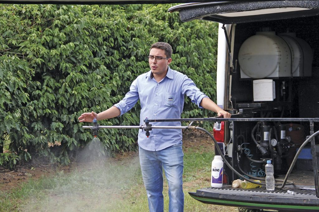 O Bombardeiro® é um potente fungicida microbiológico com exclusiva formulação líquida de baixa dosagem e ação multissítio que potencializa e protege o efeito fungicida. Além dos efeitos de choque e residual, também age na promoção de crescimento, indução de resistência das plantas e manejo efetivo de resistência a fungicidas. “Estamos recomendando o Bombardeiro®, em algumas áreas, na substituição às aplicações de Cobre, geralmente utilizadas pelos cafeicultores no controle de Cercospora e outras doenças fúngicas. Além da ação curativa e protetiva do produto, a proposta da Biotrop com a utilização do Bombardeiro® é promover o controle da população do Bicho-Mineiro, que acaba sendo estimulada à partir das pulverizações com cobre nas lavouras”, explicou Pedro Augusto.