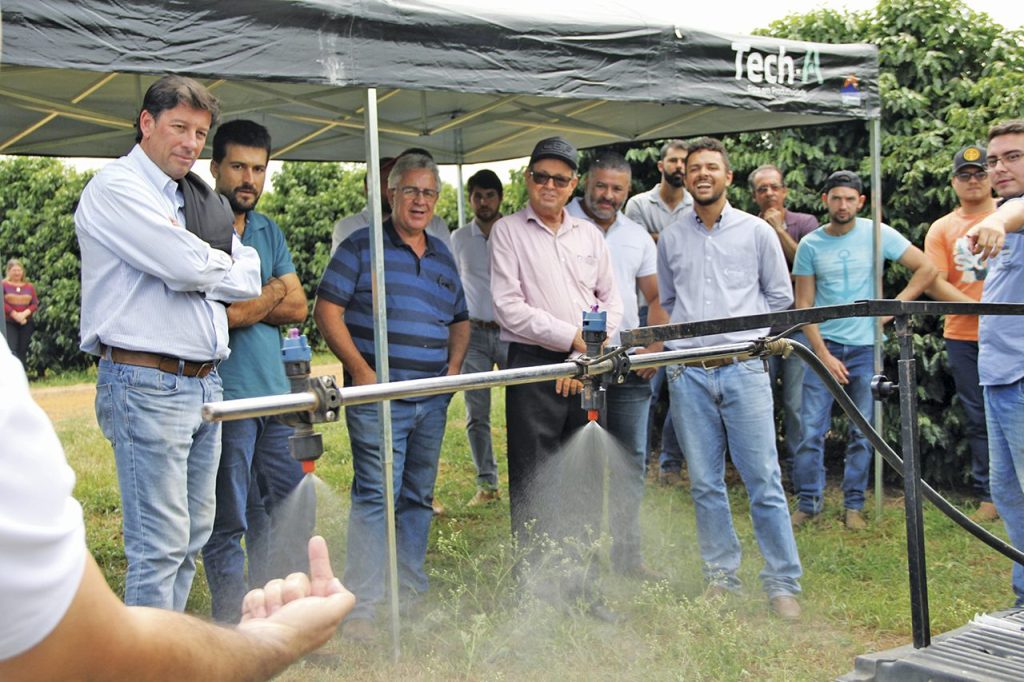 de Franca (SP), atuamos em parceria com a Grão de Ouro uma empresa Agrogalaxy na cultura do café e cereais. Neste dia de campo, levamos aos produtores soluções que contribuem para um melhor desenvolvimento do cafeeiro, incluindo alternativas para o manejo de pragas e doenças (através da indução de resistência de plantas), nutrição e estímulo fisiológico, além da linha de adjuvantes, que está relacionada com o aumento na eficiência das pulverizações”, explicou José Eduardo.