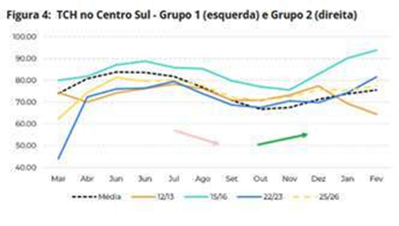 Um padrão notado nessas temporadas foi um declínio mais suave no TCH mensal durante o meio da temporada, indicando alguma resiliência, seguido por uma recuperação mais pronunciada na segunda metade da safra (após julho), mesmo partindo de uma base mais baixa.