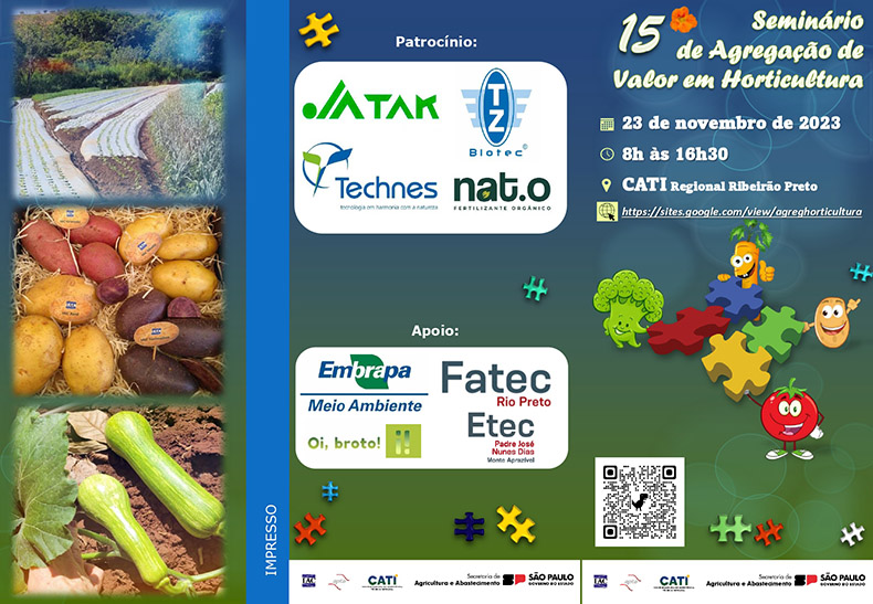 Dirigido à produtores rurais, estudantes e profissionais da área, acontecerá no dia 23 de novembro, na sede da CATI Regional Ribeirão Preto (SP), o 15º Seminário de Agregação de Valor em Horticultura.