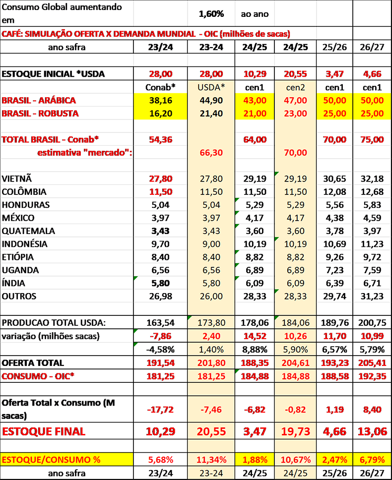 Já tivemos tantas “publicações e especulações” nos últimos meses referentes a “produção da safra brasileira 22/23, 23/24, números referentes aos estoques de passagem (que continuamos sem saber, sem serem publicados / levantados e/ou divulgados pela Conab*), consumo interno, comercialização, previsões / estimativas de embarques, previsões e tendências de preços para a próxima safra e a CNC* não se pronunciou. Por que só agora? O “mercado” ainda é livre para expressar sua opinião!