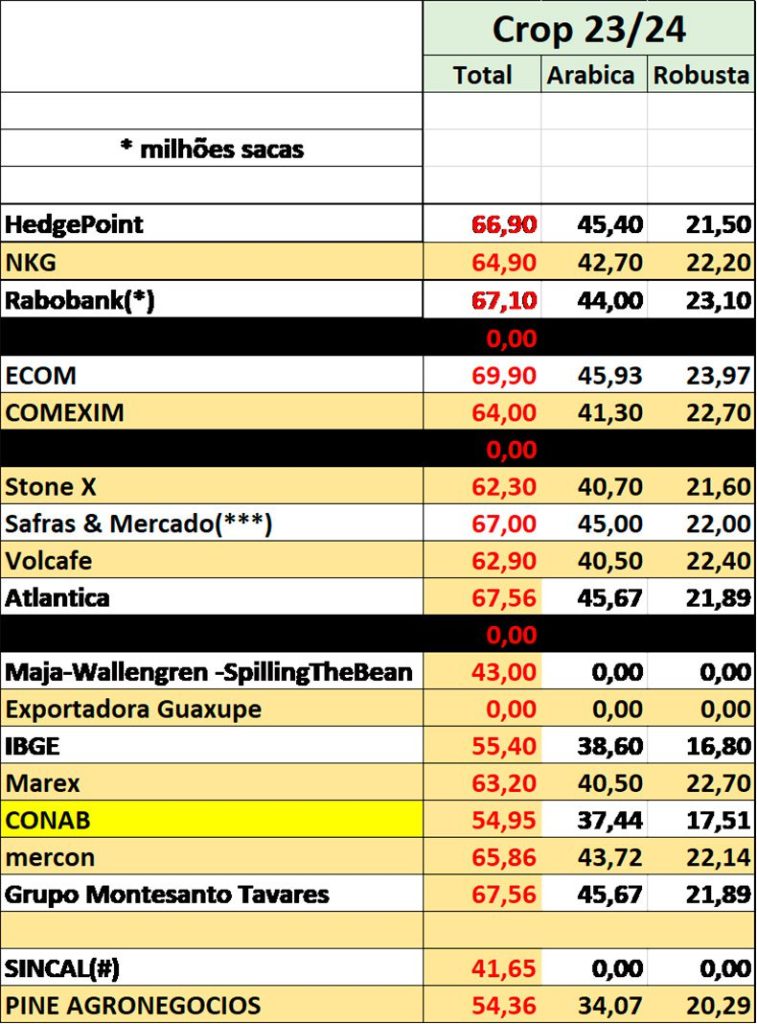 Novamente tivemos números publicados da safra brasileira 22/23 e 23/24. Como sempre, os números continuam bem discrepantes.