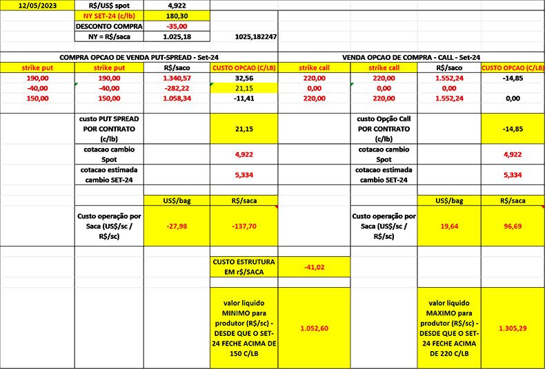 Por essas e outras, continuamos enfatizando a necessidade e urgência para o produtor “se proteger” e garantir preços acima dos +1.000 R$/saca, tanto para a safra 23/24 e quanto para a próximas safras 24/25 em diante.