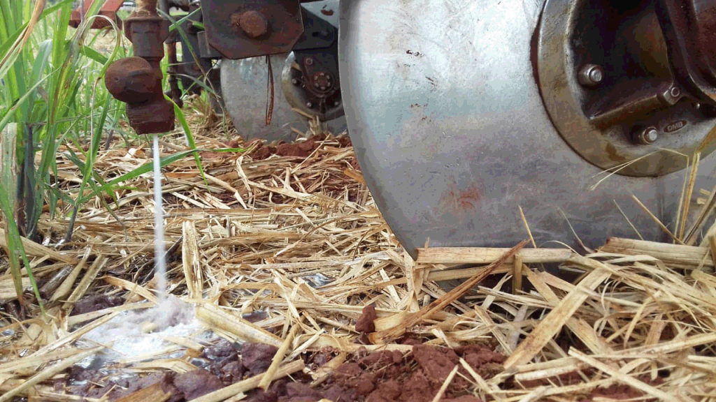 Aplicação de Omsugo ECO na lavoura de cana de açúcar.