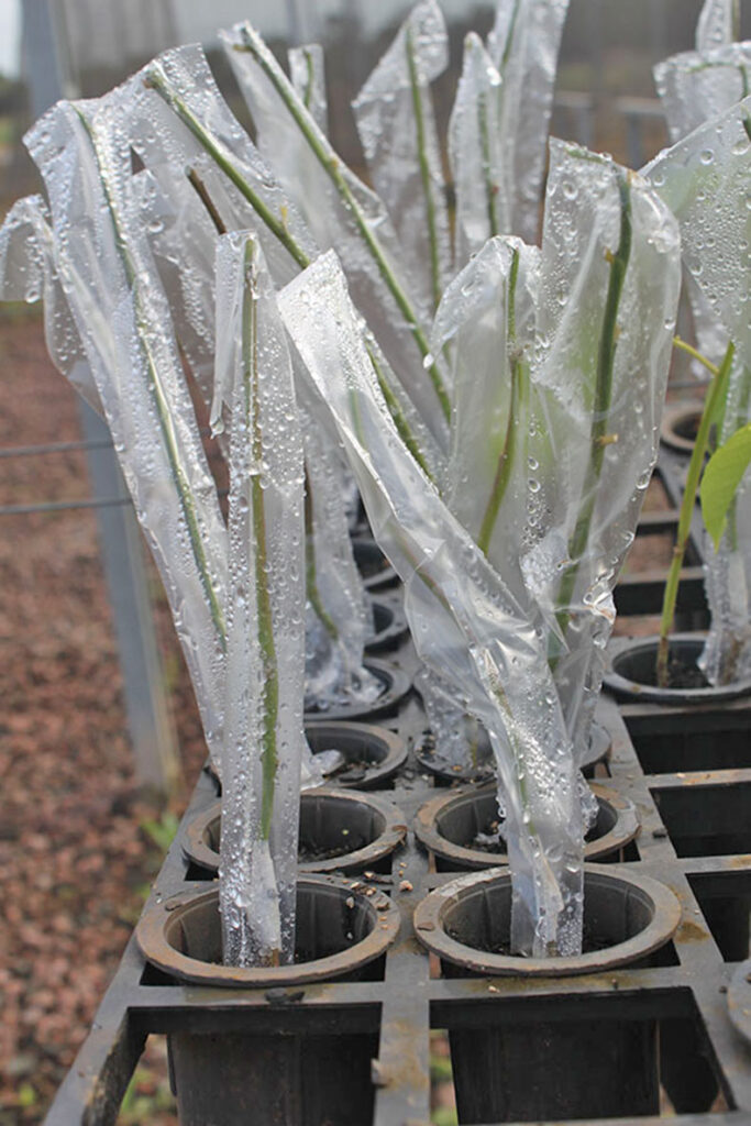Dessa forma, é feito o plantio em viveiro, por semente, tanto da cultivar que será o porta-enxerto, ou cavalo, quanto da cultivar que será a copa. As pesquisas realizadas pela Embrapa em parceria com a cooperativa Coopernova em Terra Nova Norte (MT) tiveram início em 2008 e avaliaram com sucesso o uso dos porta-enxertos Passiflora nitida cv. BRS TN Passiflora alata cv. BRS TB (veja aqui). Nos primeiros experimentos a cultivar de maracujazeiro-azedo BRS Gigante Amarelo foi utilizada como copa.
