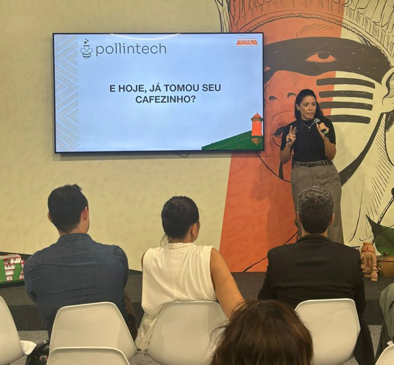 A Pollintech também marcou presença na COP 30, em Belém (PA), incluindo apresentação no estande da delegação do Governo do Amapá para os participantes interessados em conhecer como o treinamento de abelhas pode contribuir para a produção sustentável de alimentos no Brasil.