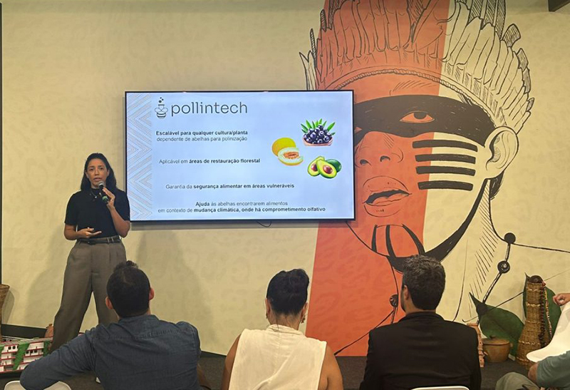 A Pollintech também marcou presença na COP 30, em Belém (PA), incluindo apresentação no estande da delegação do Governo do Amapá para os participantes interessados em conhecer como o treinamento de abelhas pode contribuir para a produção sustentável de alimentos no Brasil.