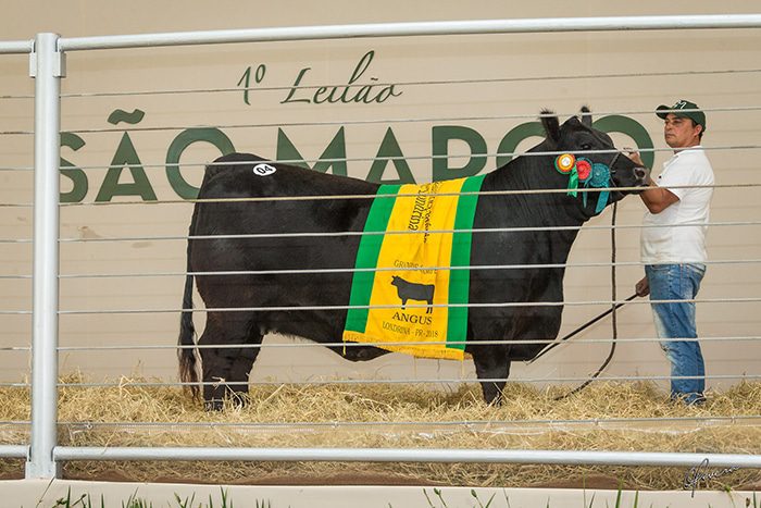 O feito foi obtido logo na estreia da Fazenda São Marco nos remates. A propriedade da família Bonfiglioli tem pouco mais de três anos de atuação na Angus e já acumula dezenas de títulos e venceu o ranking de expositores de argola de 2018. Depois de uma disputa acirrada que envolveu cinco criadores e elevou os ânimos no recinto de leilões montado em meio à lavoura de milho, o martelo foi batido para o criatório gaúcho Black Opal Agropecuária, de Aceguá (RS).