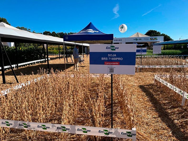 Além do lançamento, outras cultivares – BRS 7582, BRS 7781, BRS 7180 IPRO e BRS 8383 IPRO – estão na Vitrine de Tecnologias da Embrapa na AgroBrasília. As duas primeiras são variedades convencionais que alcançam boa produtividade e com possibilidade de obter maior valor de mercado por atender uma demanda internacional. “Os europeus precisam da nossa soja e precisam do Brasil. Eles produzem dois milhões de toneladas de soja convencional por ano, mas o consumo é de onze milhões de toneladas. E ainda há a possibilidade que a Europa pague pelo sequestro de carbono para os produtores que tenham sistemas convencionais certificados”, explica Luiz Fiorese, presidente da Fundação Cerrados.