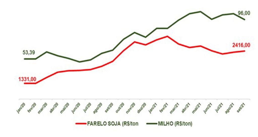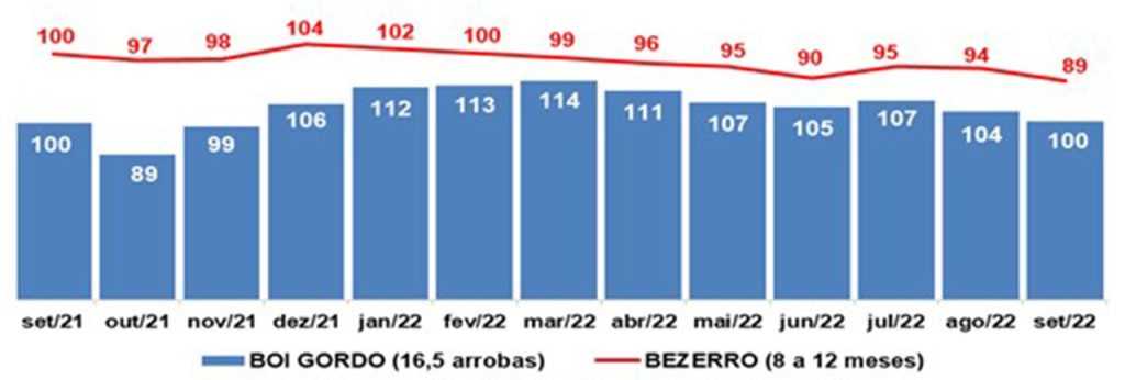 Imagem 7 – Variação Índices (setembro/21 base 100). (Fonte: CEPEA, Adaptado Sindirações)