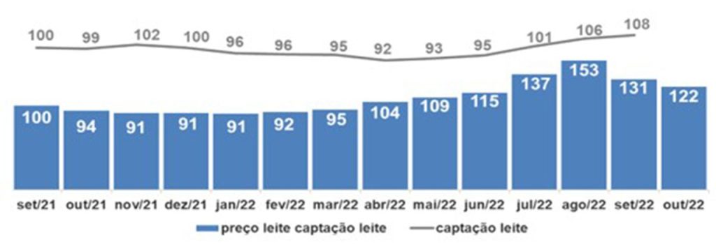 Imagem 6 – Variação Índices Leite (setembro/21 base 100). (Fonte: CEPEA, Adaptado Sindirações)