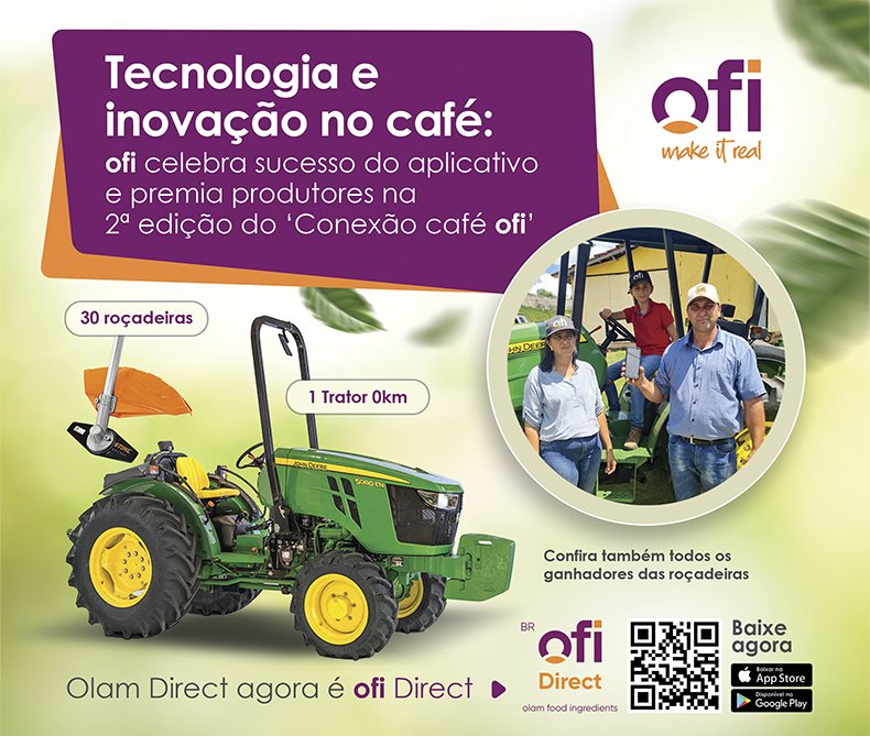A ofi (Olam Food Ingredients) realizou em 08 de dezembro de 2023 a segunda edição do Conexão Café ofi, evento que reuniu aproximadamente 1800 pessoas entre produtores de café, parceiros e colaboradores. O evento foi realizado simultaneamente pelas 12 filiais da divisão de café no Brasil. Durante o evento, foram anunciados os ganhadores do Sorteio Olam Direct, campanha que incentivou o uso do aplicativo de relacionamento e transações da ofi – Olam Direct. Nesta edição, foram sorteados um trator cafeeiro John Deere e 30 roçadeiras.