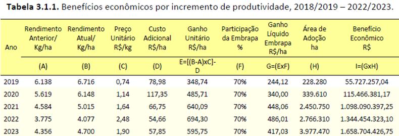 A quantia estimada de R$ 4,27 bilhões (exatos R$ 4.272.442.785,31) em benefícios ao produtor é consideravelmente superior aos custos de desenvolvimento da tecnologia: cerca de R$ 53,3 milhões até esse período. “Esses números atestam a importância dos investimentos em pesquisa, desenvolvimento e inovação para a agricultura nacional”, comenta o pesquisador.