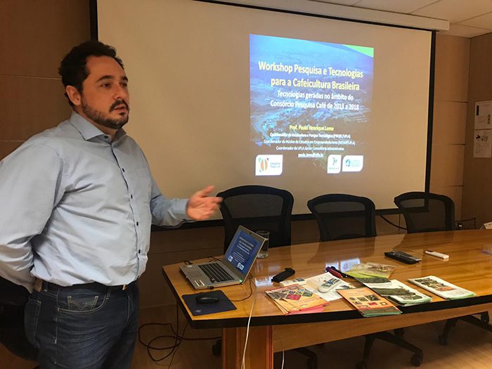 O representante da Universidade Federal de Lavras (UFLA) e coordenador de Incubadora e Parque Tecnológico (Inbatec), Profº Paulo Henrique Leme, participou, no dia 12 de abril, na sede da Empresa Brasileira de Pesquisa Agropecuária (Embrapa Café), em Brasília (DF), do workshop “Pesquisa e Tecnologias para a Cafeicultura Brasileira”.