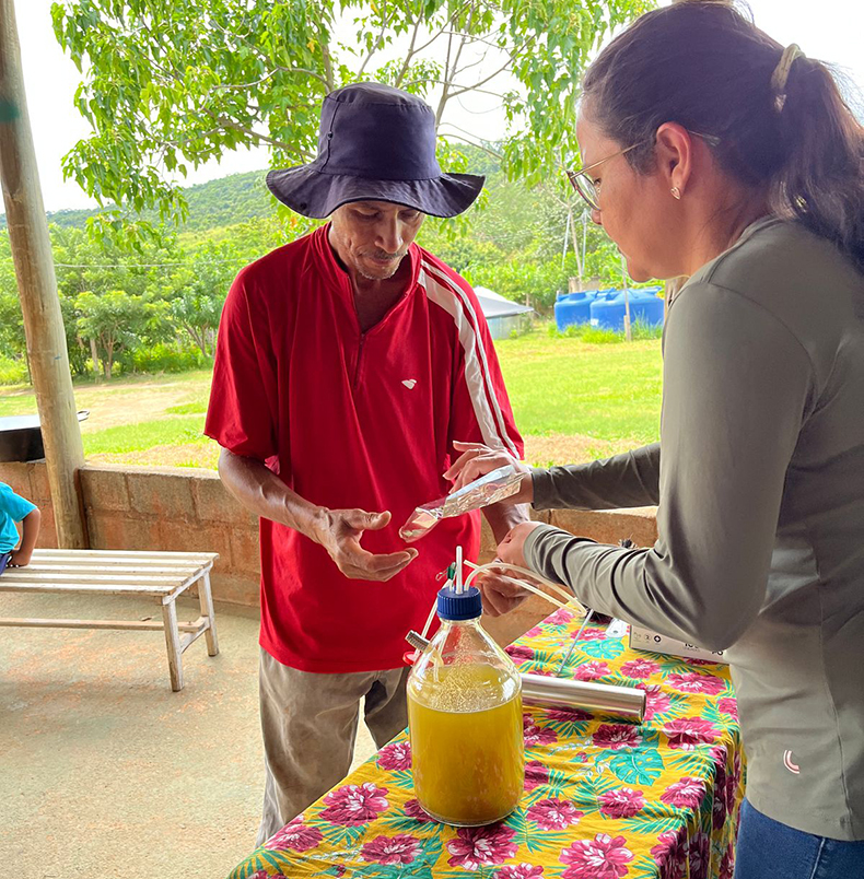 “Os resultados foram muito bons: quatro inoculantes foram produzidos por quatro agricultores diferentes, sem contaminação e com uma concentração de um bilhão de células por mL do produto, superando os padrões exigidos pelo Ministério da Agricultura (Mapa). A qualidade desses inoculantes produzidos pelos agricultores no campo foi equivalente àqueles que são feitos em laboratório por profissionais altamente qualificados”, explica a pesquisadora Marcela.